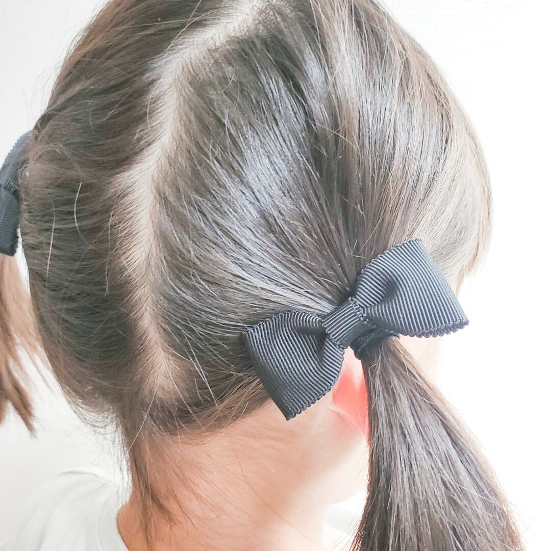 【冠婚葬祭•お受験にも最適】高級国産リボンのキッズヘアゴム (2コセット) ブラック
