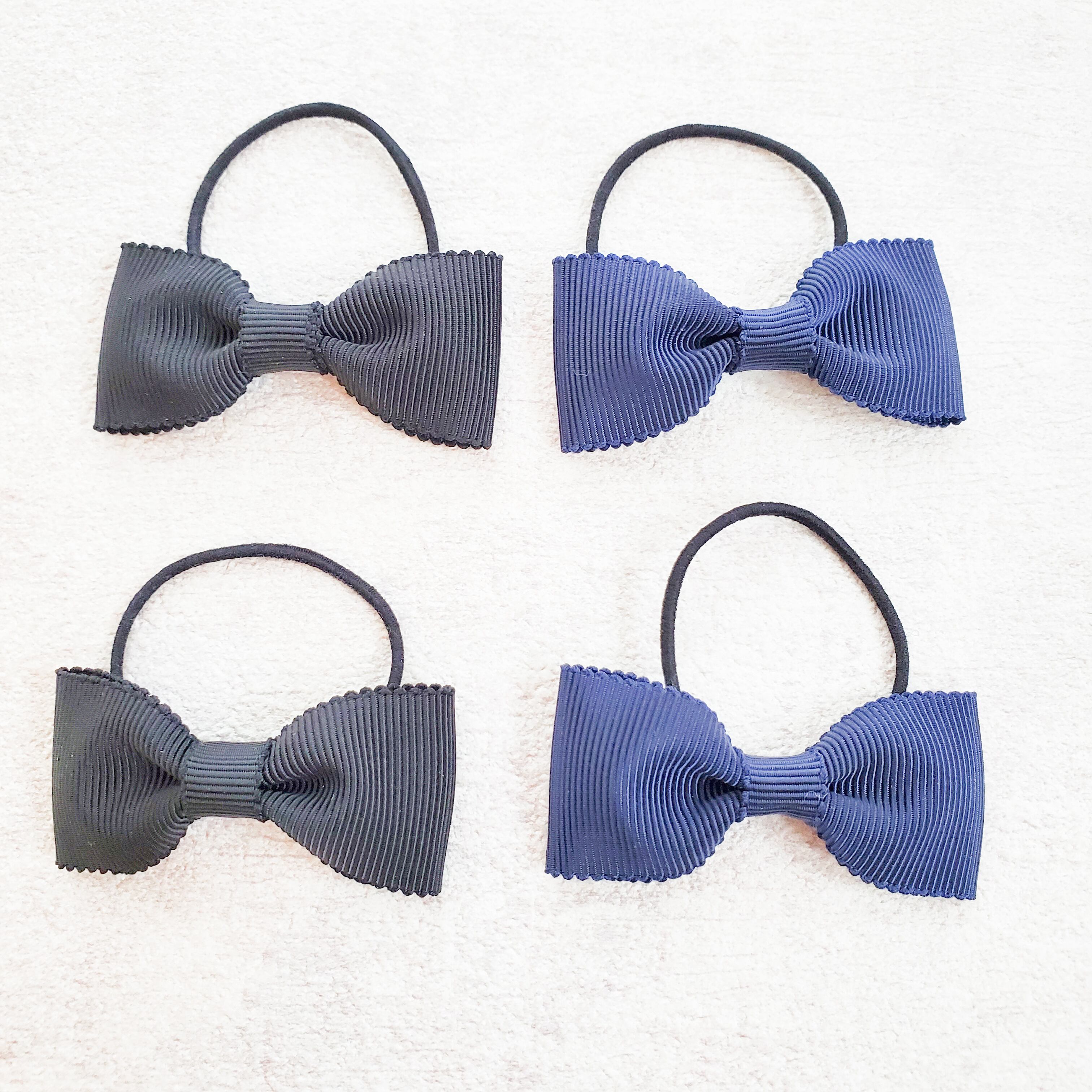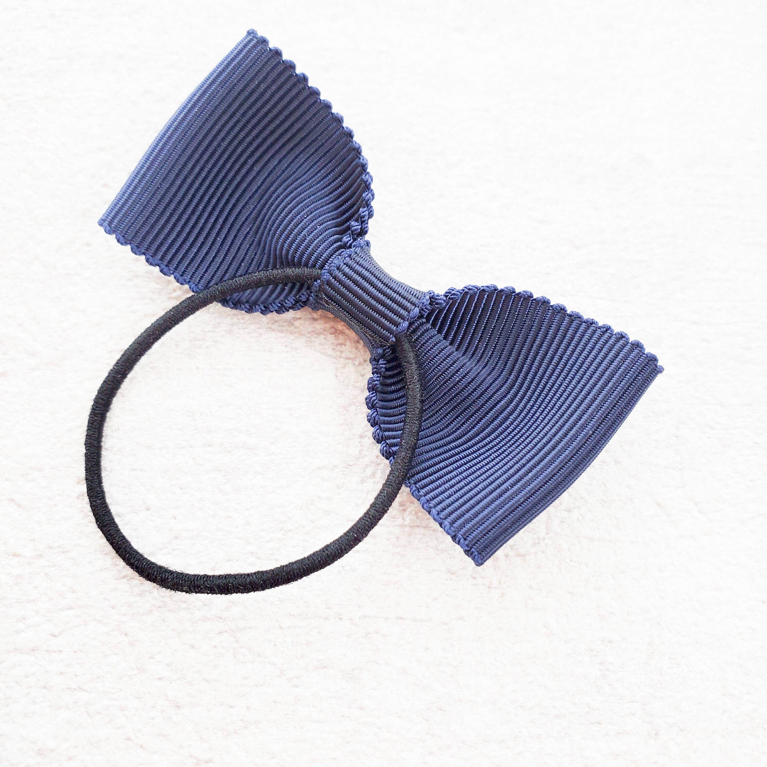 【冠婚葬祭•お受験にも最適】高級国産リボンのキッズヘアゴム (2コセット) ネイビー