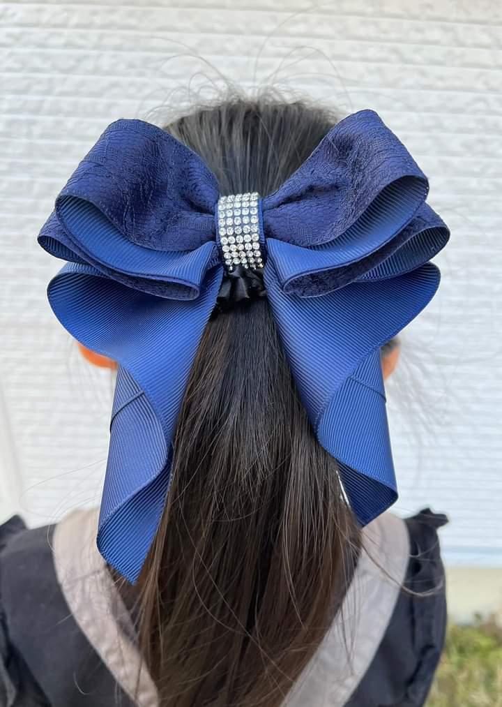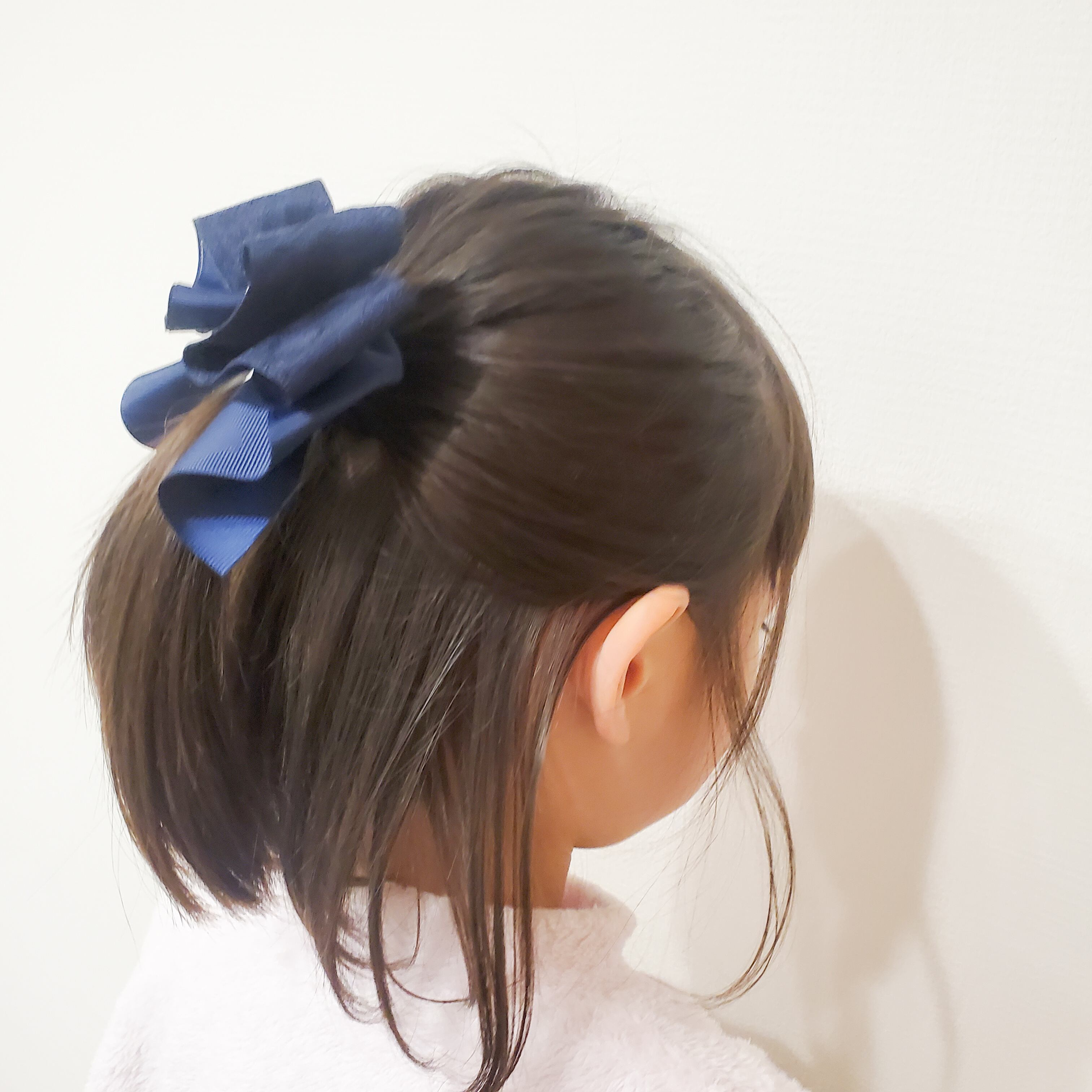 【子ども向け】再販♡レースが可愛いドレープリボン レギュラーサイズ ネイビー