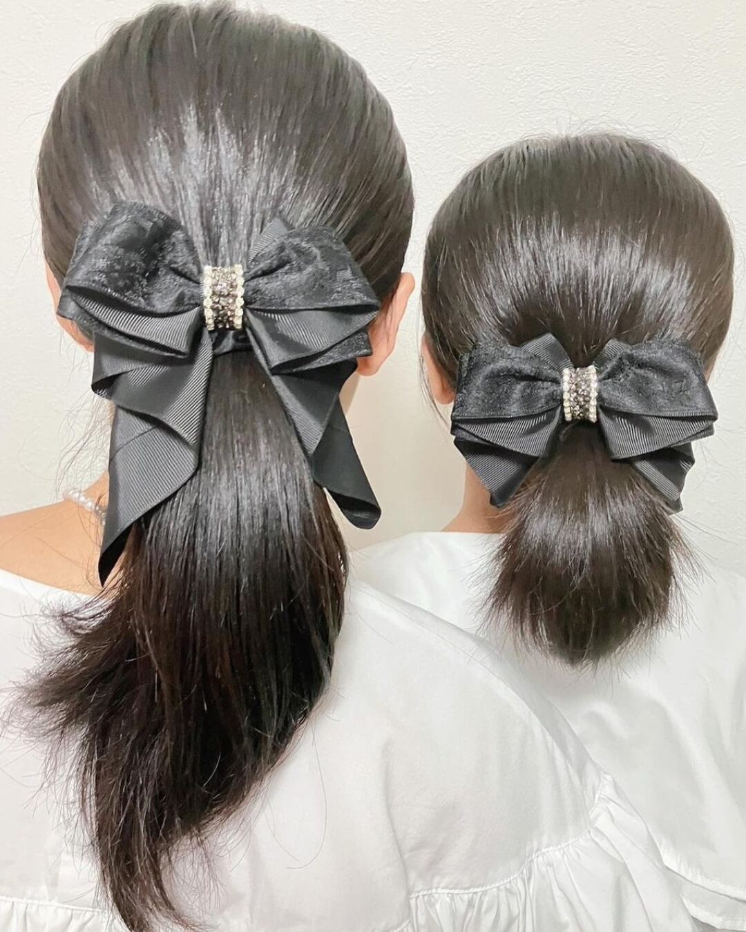 ブラックのリボンは、大人っぽい雰囲気や落ち着きのあるスタイルにもぴったりです。